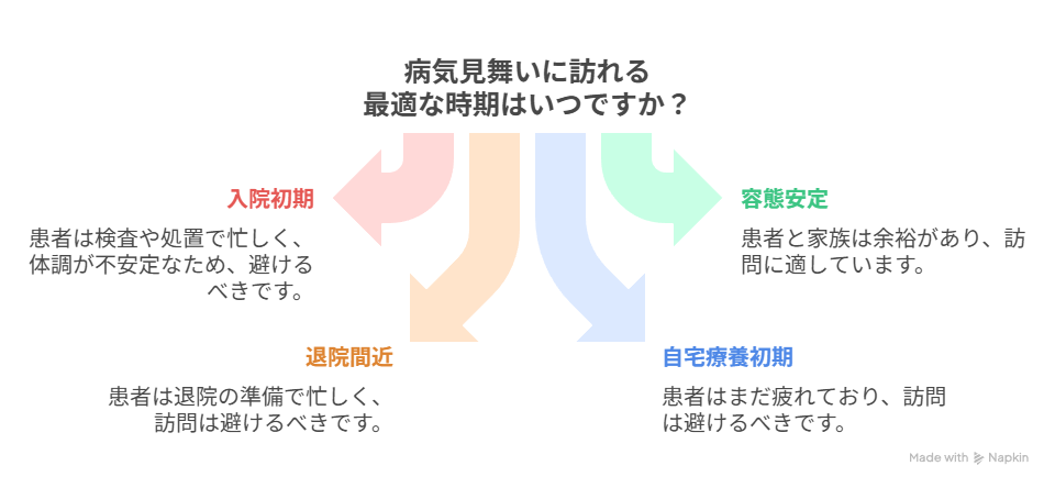 容態が安定して医師の治療方針も決まり、本人や家族に余裕ができてから訪問するのが望ましいでしょう。