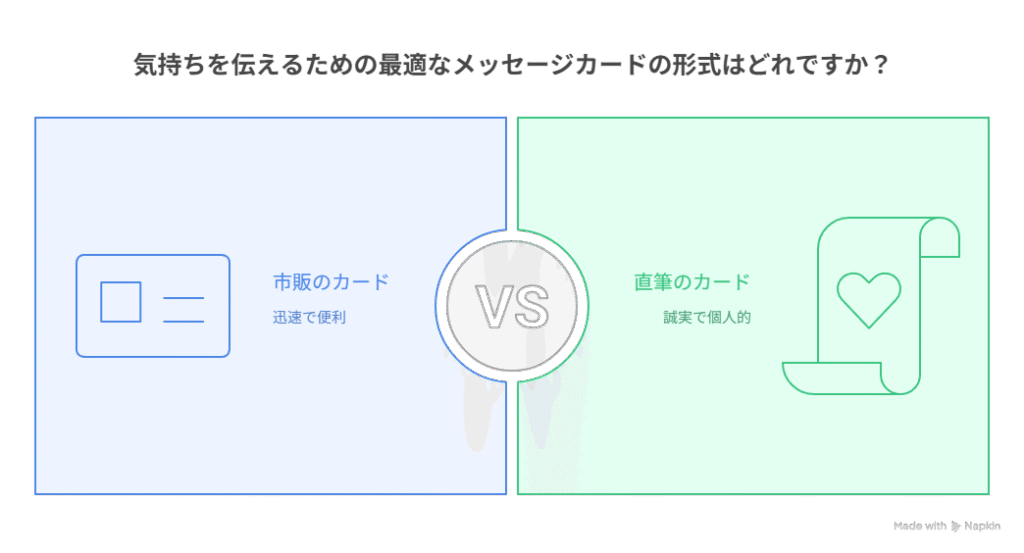 市販のカードでも良いですが、直筆でメッセージを書くと誠意が伝わりやすくなりますよ!