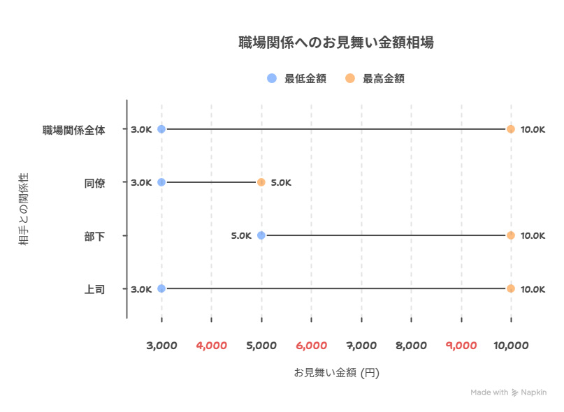 職場関係のお見舞いは、3,000円〜10,000円程度が目安です。